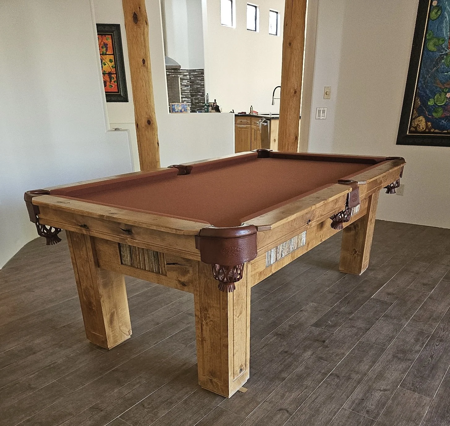 This is a beautiful 7’ Brunswick Contender in like new condition. It currently has new tournament grade felt in a burgundy color. It will comes with all needed accessories.