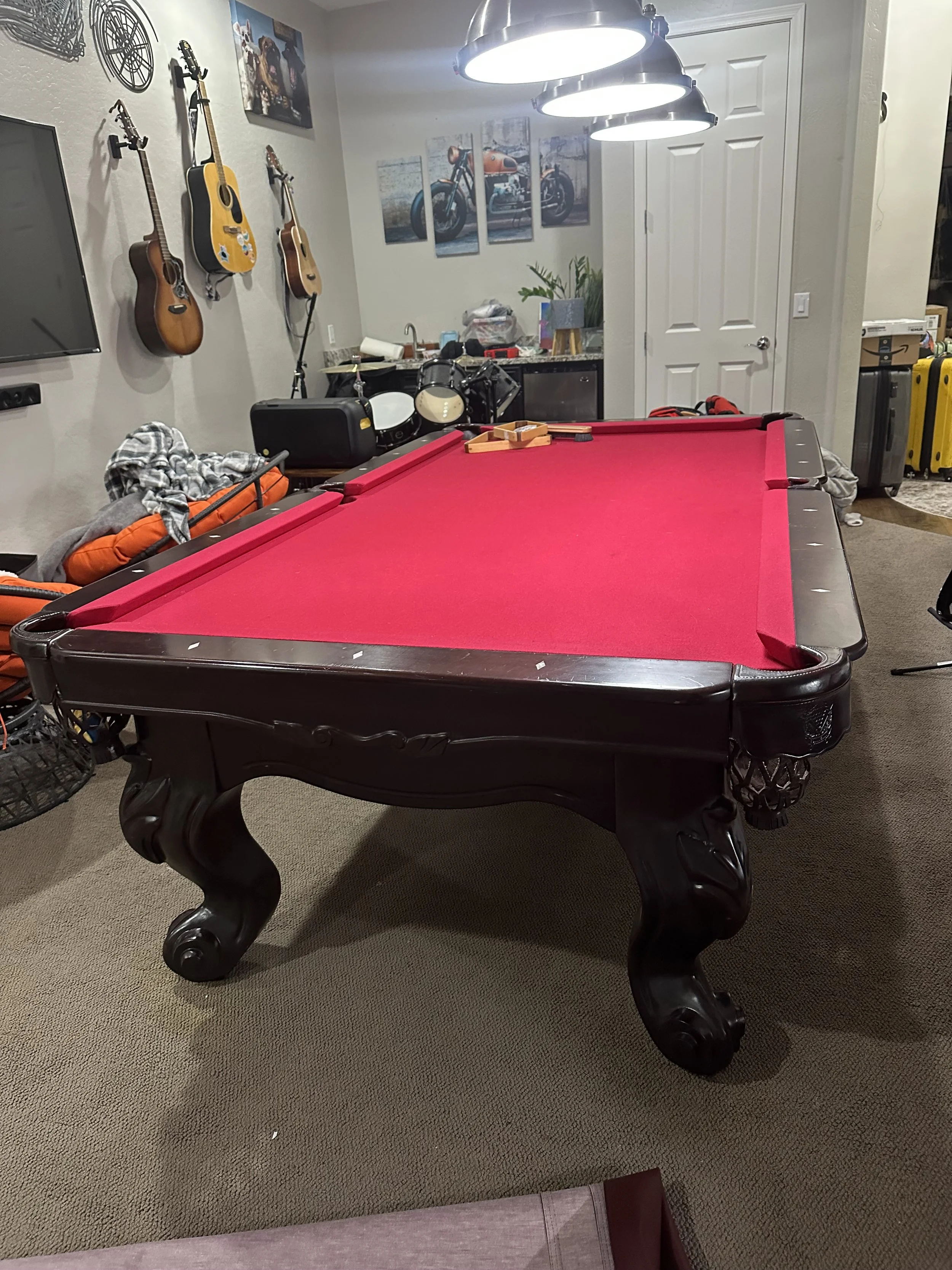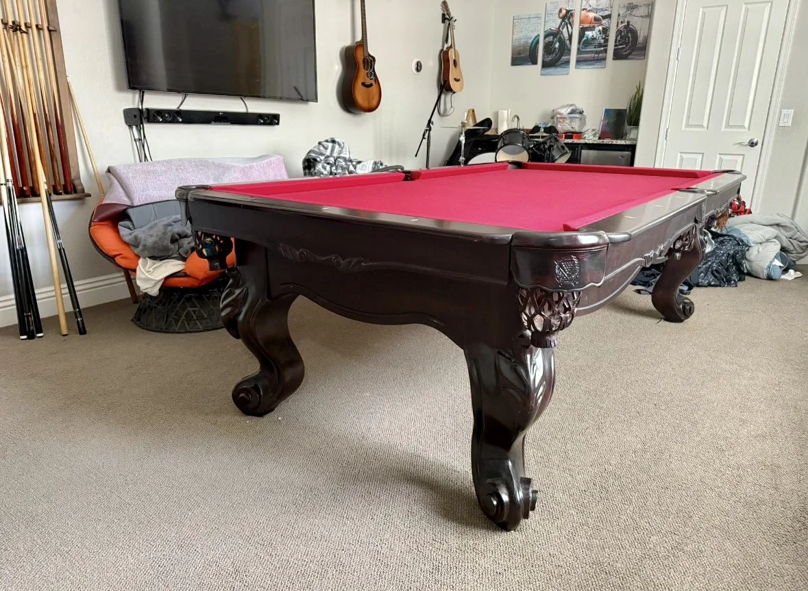 A beautiful black Santa Ana made by Olhausen Billiards in the USA! This is a very high quality table with accu-fast pure 100% gum rubber bumpers! Buyer can choose any color felt free! All accessories included.